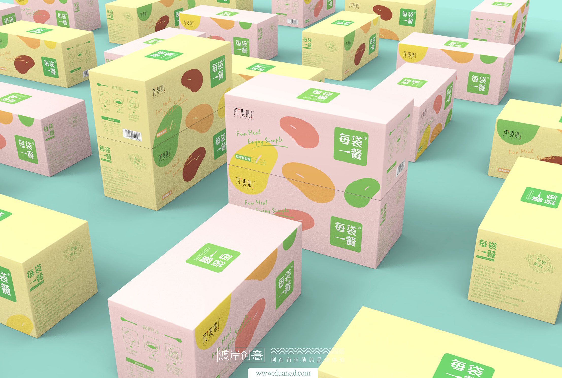 通過與客戶溝通,芃麥集不僅注重高品質(zhì)食材,更注重都市白領(lǐng)的健康生活方式。所以包裝設(shè)計(jì)采用簡約時(shí)尚的方式去表達(dá)創(chuàng)作,成功打破了市場同類產(chǎn)品的同質(zhì)化,使得產(chǎn)品包裝時(shí)尚新穎獨(dú)特,在貨架上脫穎而出,深的消費(fèi)群體喜歡選擇。