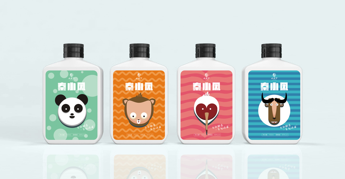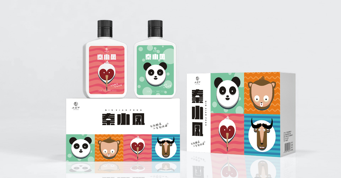 瓶標(biāo)設(shè)計(jì)上我們以“秦嶺四寶”(即大熊貓、朱鹮、金絲猴和羚牛這四種動(dòng)物)作為主創(chuàng)IP,進(jìn)行提煉創(chuàng)作,使得IP極具性格又有親和性,背景采用時(shí)尚年輕的波普圖形。