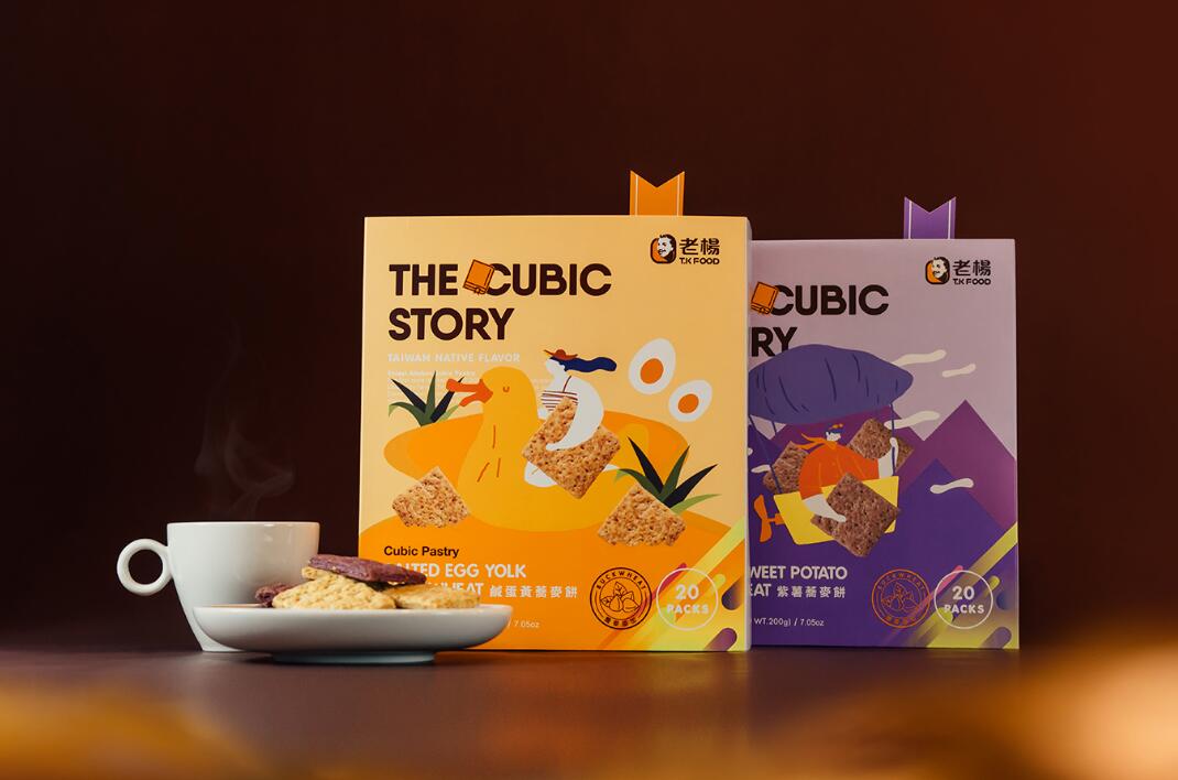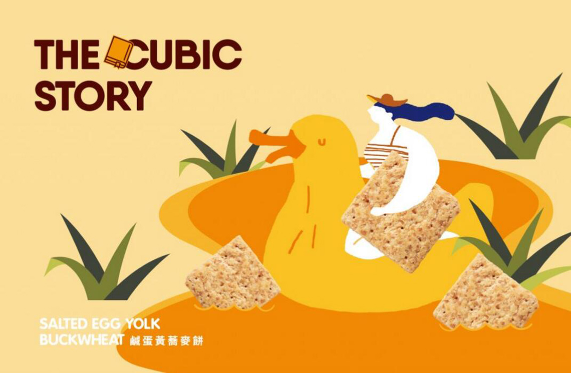 主題「THE CUBIC STORY」以童趣插畫風格展現了不同口味的幻想故事,選用臺灣傳統(tǒng)的口味-咸蛋黃搭配小鴨的故事及紫心地瓜熱氣球,
