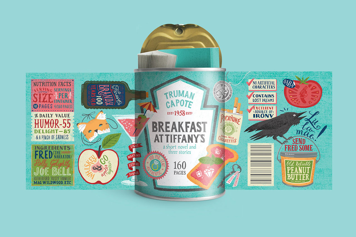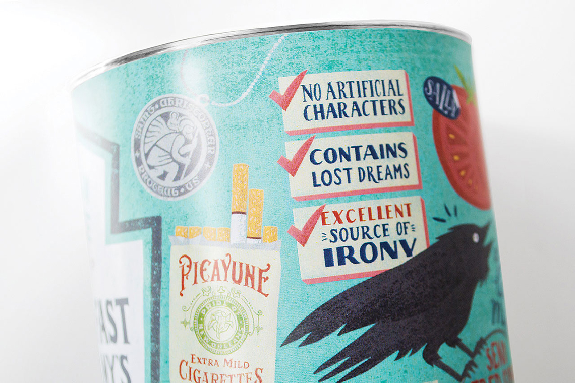 在包裝上你可以發(fā)現(xiàn)書里那些幽默和諷刺的“日常價(jià)值”,書的大小厚度正好放進(jìn)罐頭盒里,就好像每一頁紙張都是小說的一份調(diào)料。
