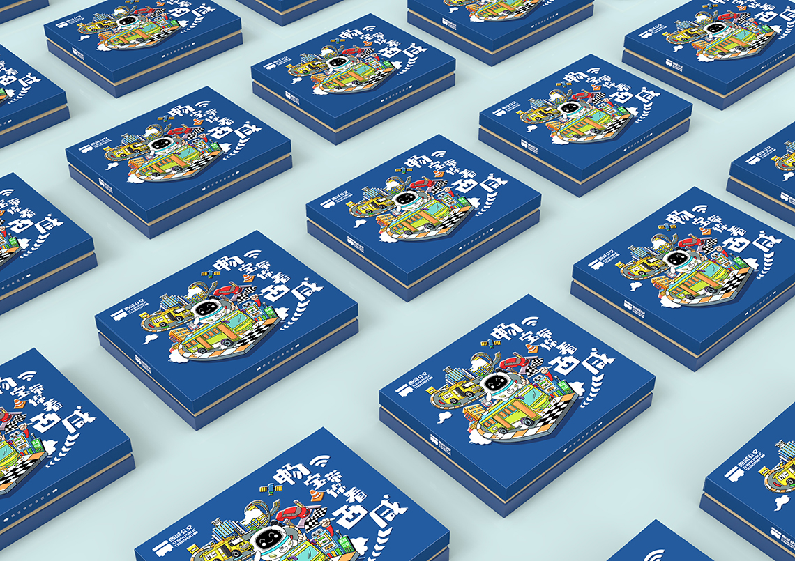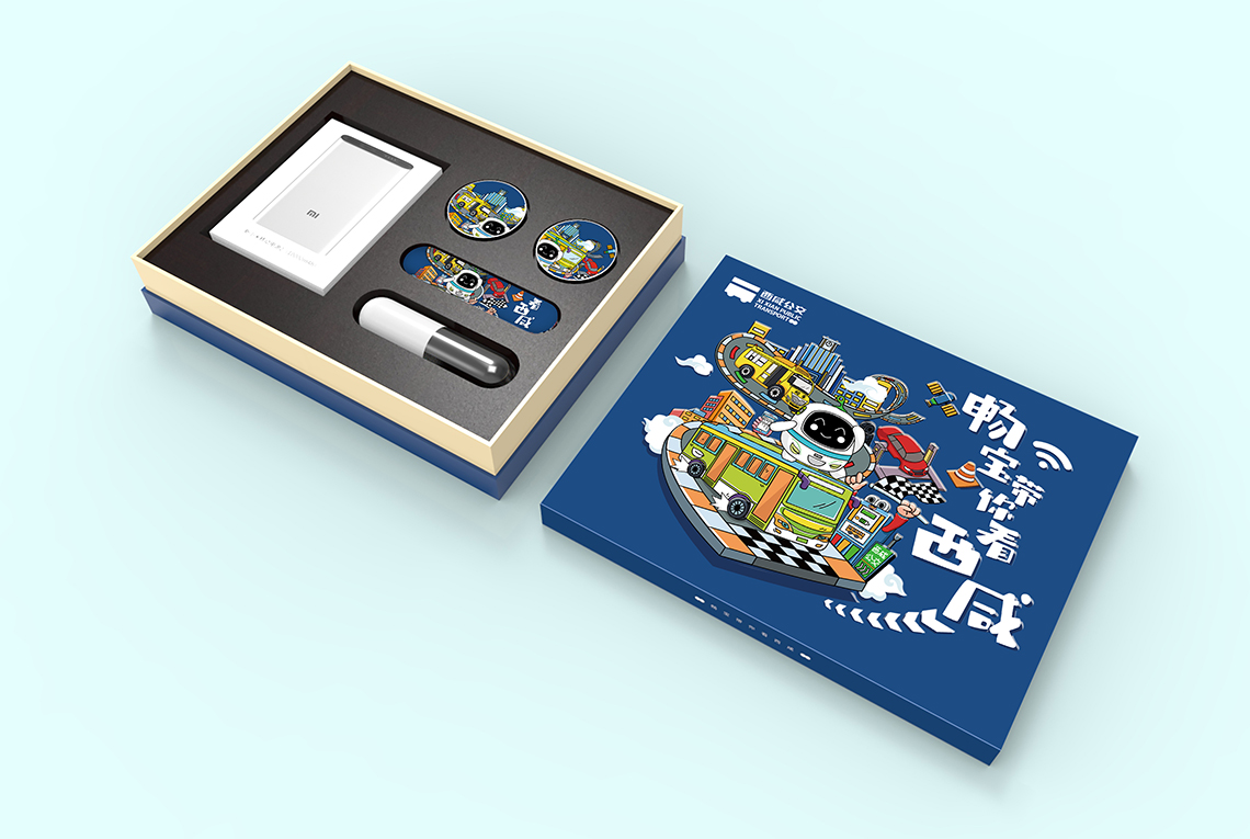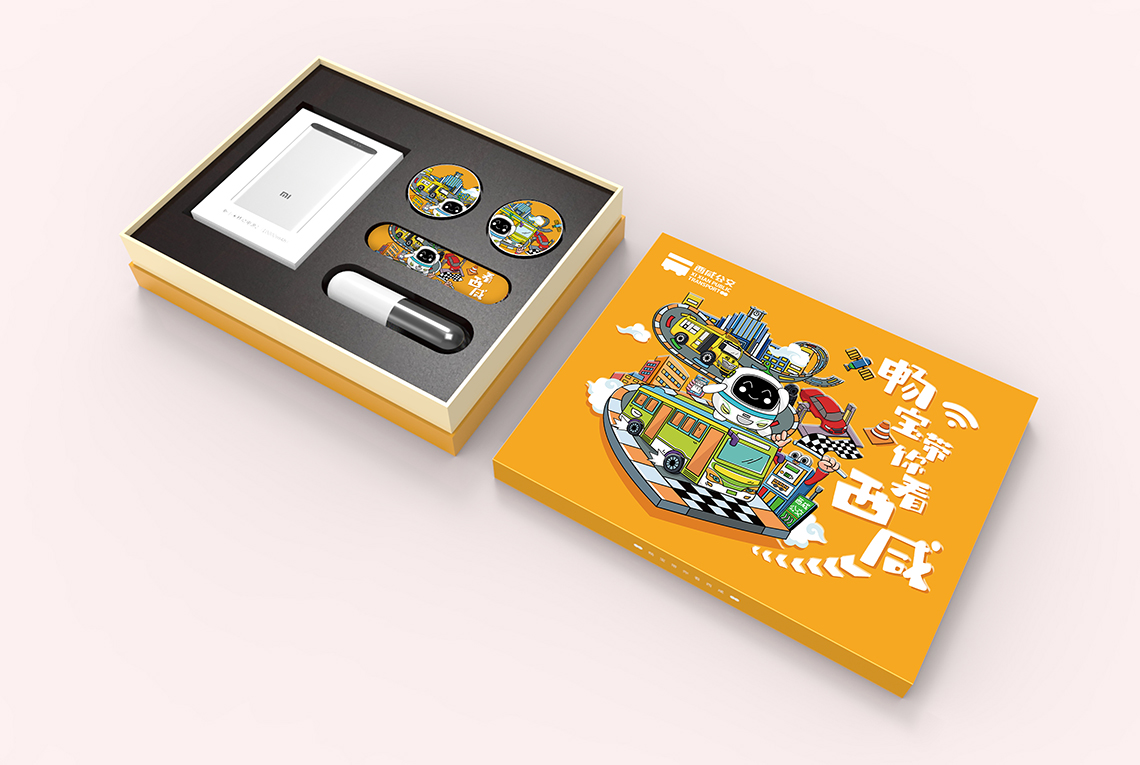 根據(jù)西咸公交綠色、智慧、定制、智能的服務理念和特點,我們提出“智享生活”的理念,帶你看最精彩的,玩最好玩的,禮盒畫面中,企業(yè)“IP”暢寶以一位活潑的小導游形象向各位介紹特色的西咸公交。