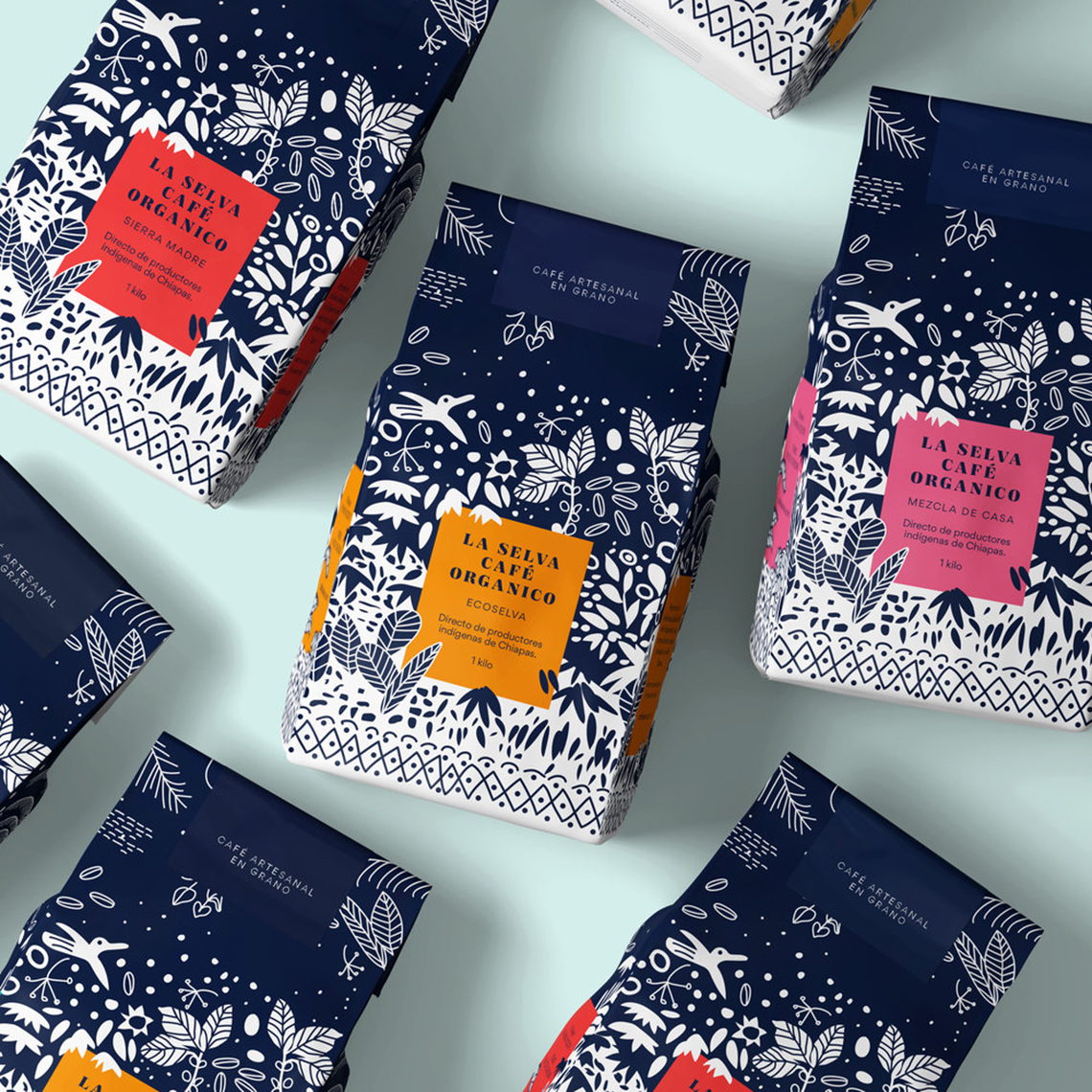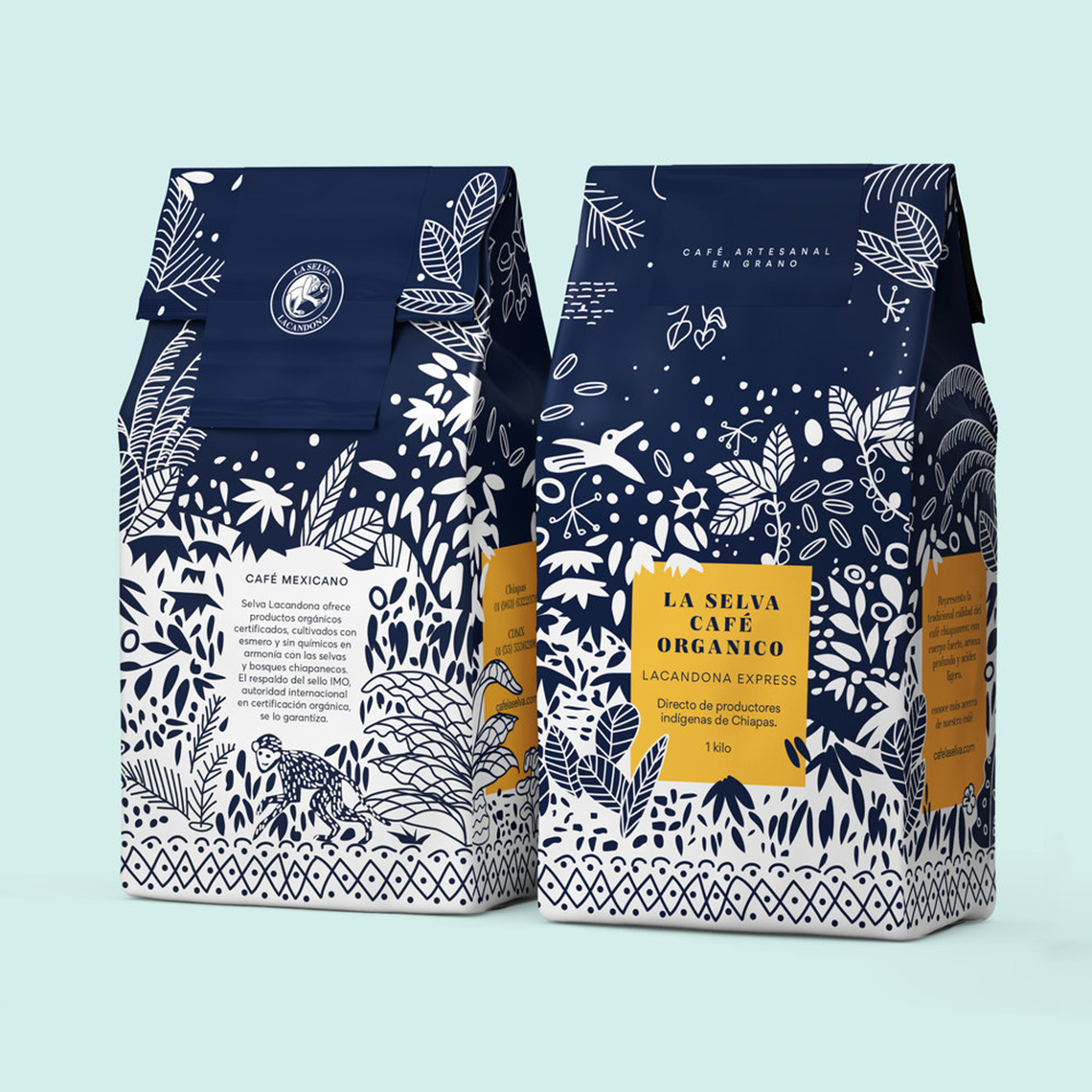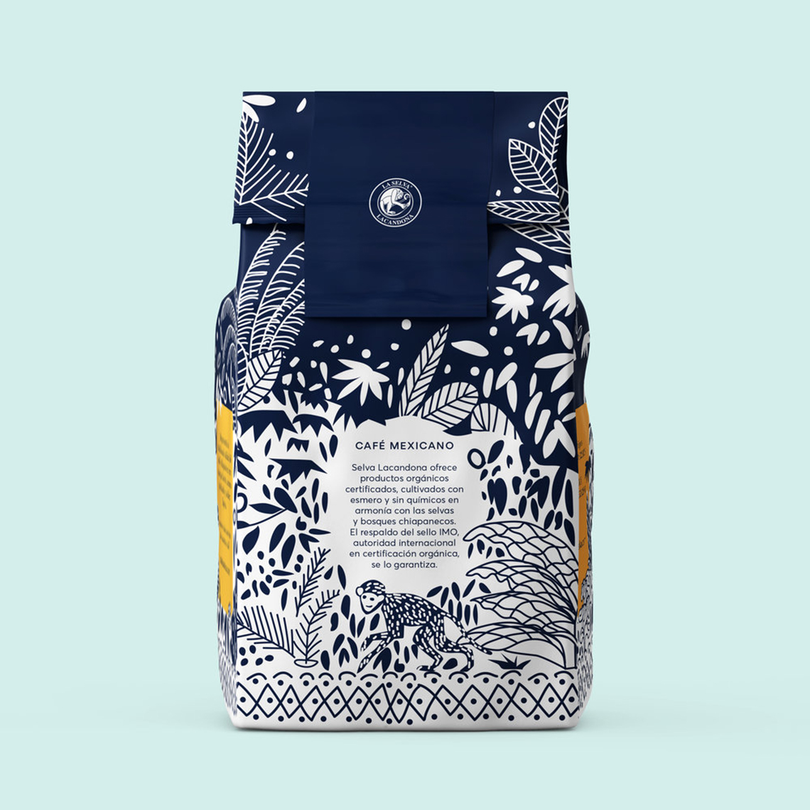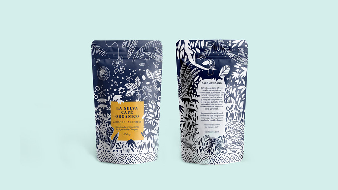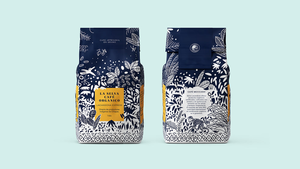 ? ? ? ? La Selva Café提供經(jīng)認(rèn)證的有機(jī)產(chǎn)品,經(jīng)過精心培育,沒有化學(xué)品,與墨西哥恰帕斯的叢林和森林和諧相處。它代表了恰帕斯咖啡的傳統(tǒng)品質(zhì),具有濃郁的酒體、濃郁的香氣和淡淡的酸度。海事組織印章的支持保證了其有機(jī)來源。為了重新設(shè)計(jì),以前的包裝插圖的元素被采取,使它有一個(gè)更現(xiàn)代和更具吸引力的扭曲。深藍(lán)色的顏色和正負(fù)兩色之間的相互作用,說明了咖啡采摘的茂密叢林,這是該地區(qū)典型的動(dòng)植物間的叢林。