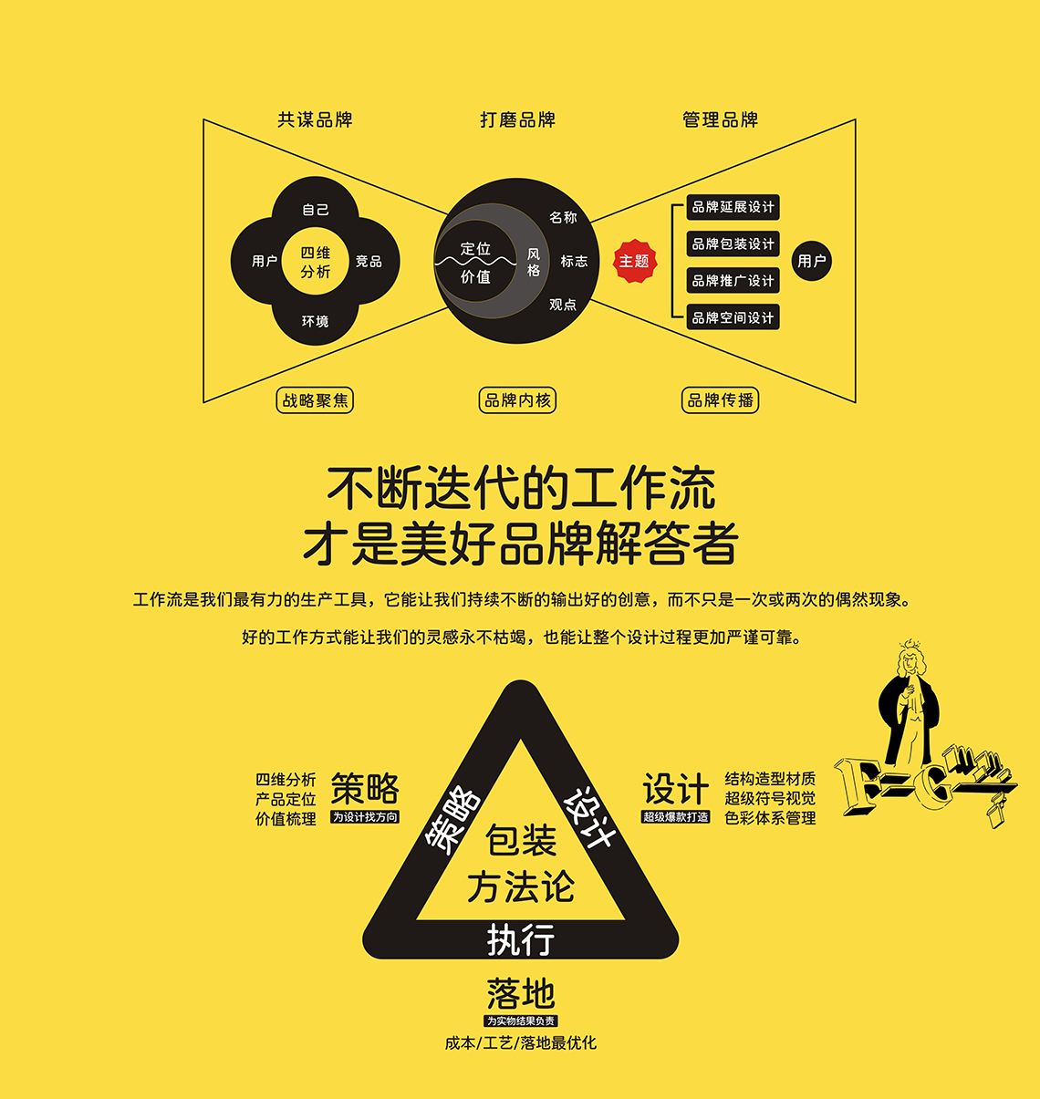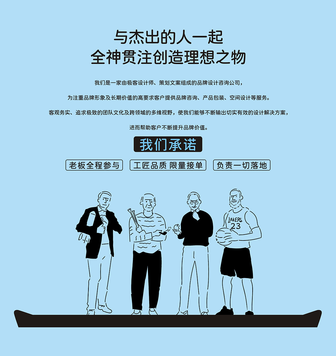 我們是一家由極客設(shè)計(jì)師、策劃文案組成的品牌設(shè)計(jì)咨詢(xún)公司,為注重品牌形象及長(zhǎng)期價(jià)值的高要求客戶(hù)提供品牌咨詢(xún)、產(chǎn)品包裝、空間設(shè)計(jì)等服務(wù)??陀^務(wù)實(shí)、追求極致的團(tuán)隊(duì)文化及跨領(lǐng)域的多維視野,使我們能夠不斷輸出切實(shí)有效的設(shè)計(jì)解決方案,進(jìn)而幫助客戶(hù)不斷提升品牌價(jià)值。