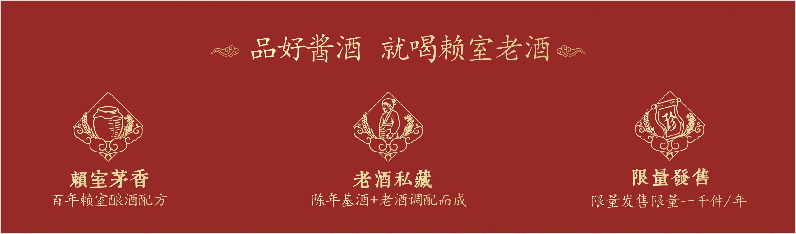賴室老酒進(jìn)行組合,形成一個(gè)印章,代表了賴室老酒不變承諾。
