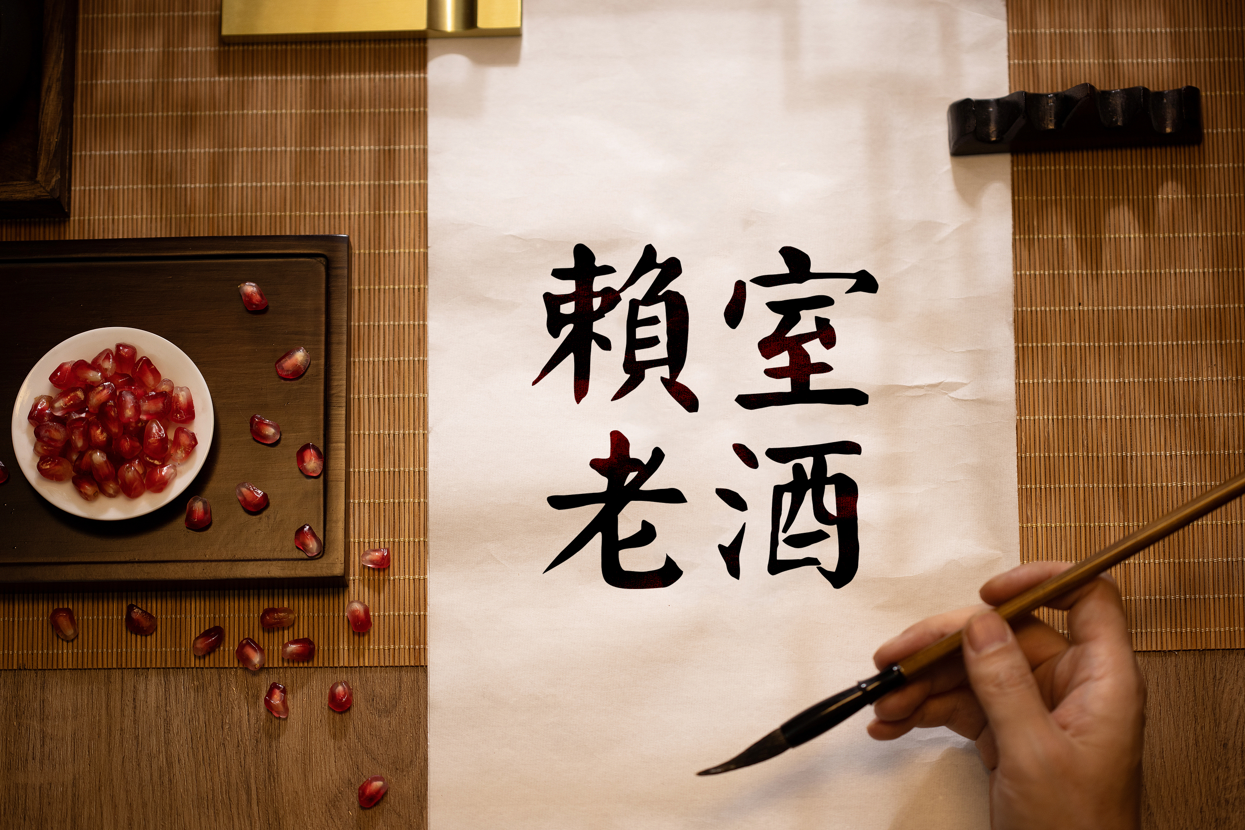 我們選取了一代名臣,滿門忠烈的顏真卿[顏體],并在其基礎(chǔ)上優(yōu)化完善,形成了開闊、雄渾、寬厚、中正樸茂的“賴室老酒”字體標(biāo)志符號(hào)。整體書體中正樸厚,一筆一畫,鄭重其事,和賴室老酒的價(jià)值觀內(nèi)涵是相吻合的。
