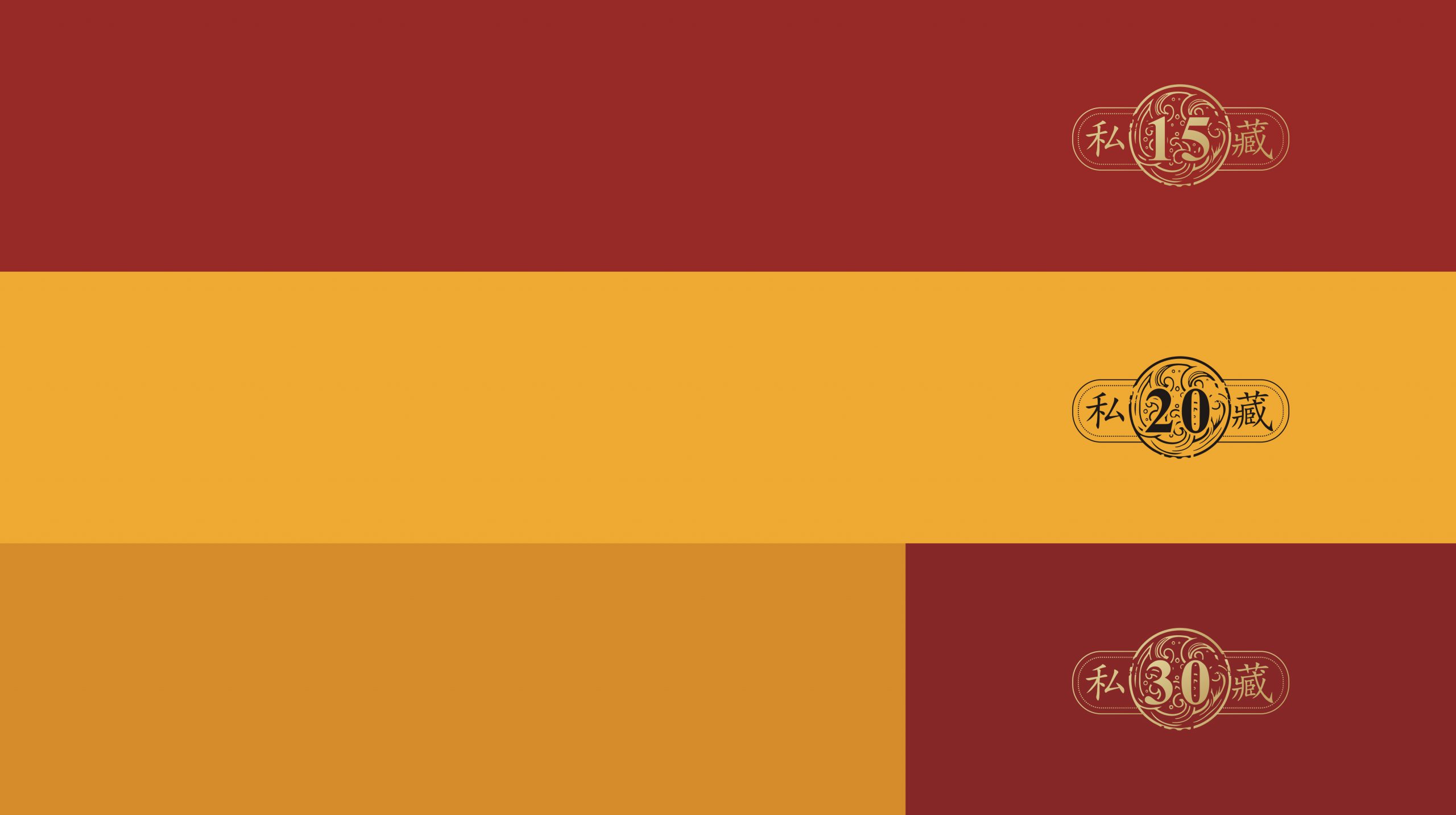 賴室老酒·私藏15、私藏20、私藏30分別采用傳統(tǒng)“絳紅色”、“帝王黃”、“ 絳紅&帝黃”作為主色,大氣沉穩(wěn)更具歷史底蘊(yùn)。核心思維就是“從群眾中來、到群眾中去”,滿足顧客習(xí)慣:1、顧客一眼就喜歡,即這個(gè)色彩,是這個(gè)品類在其主要消費(fèi)場景下,是最具有積極品類意義與文化意義的色彩。2、顧客一張嘴就能傳播,買那個(gè)紅的、黃的、藍(lán)的、綠的……